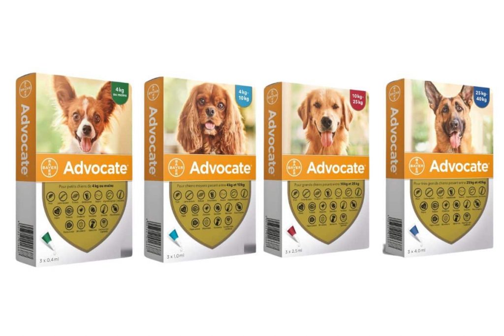 Advocate est disponible en boîtes de pipettes de différentes tailles, généralement de 3 à 6 pipettes par boîte. Le prix varie généralement entre 30 et 60 euros par boîte, en fonction de la quantité de pipettes et du point de vente.