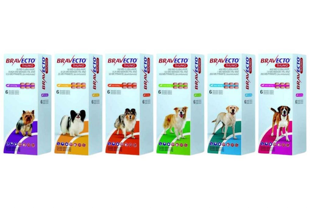 Bravecto TriUNO est disponible en 6 dosages adaptés à des poids allant de 1,27 à 60 kg (avec des associations possibles pour des poids supérieurs), en boîtes de 6 comprimés. Nous attendons les prix d’achat HT qui vont venir au mois de mai.