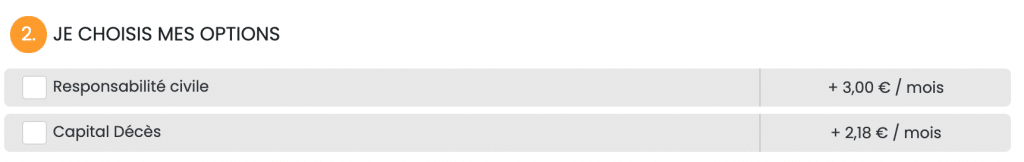 Possibilité de rajouter des options pour inclure la responsabilité civile et capital décès dans les formules :