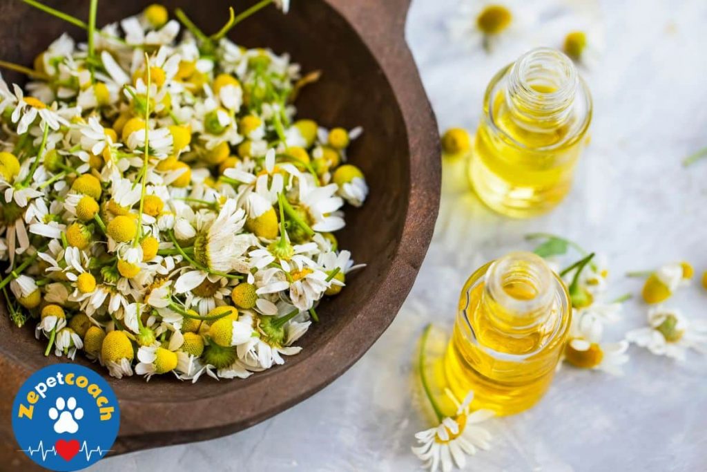 • Camomille : Connue pour ses propriétés calmantes et digestives, elle peut être utilisée sous forme d’huile essentielle diluée ou de tisane.